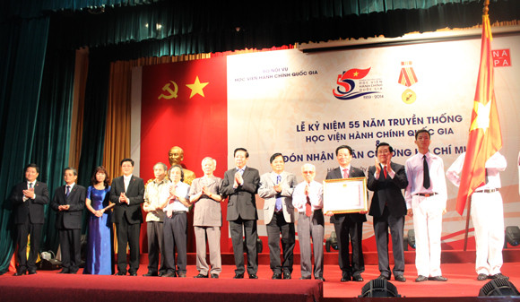 Tại buổi lễ, GS.TS Nguyễn Đăng Thành, Thứ trưởng Bộ Nội vụ, Giám đốc Học viện cũng đã ôn lại những mốc son quan trọng trong quá trình hình thành và phát triển, tiền thân là Trường hành chính thuộc Bộ Nội vụ, được thành lập ngày 29-5-1959, theo Nghị quyết số 214-NV do Phó Thủ tướng kiêm Bộ trưởng Bộ Nội vụ Phan Kế Toại ký, đến nay Học viện Hành chính Quốc gia đã đạt được nhiều thành tích sau 55 năm.