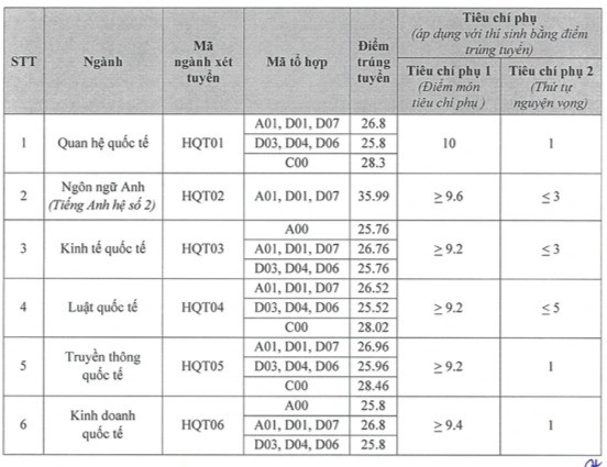 Cụ thể điểm chuẩn Học viện Ngoại giao năm 2023 như sau: