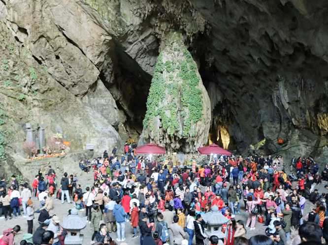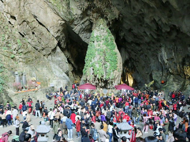 Du khách vãn cảnh động Hương Tích