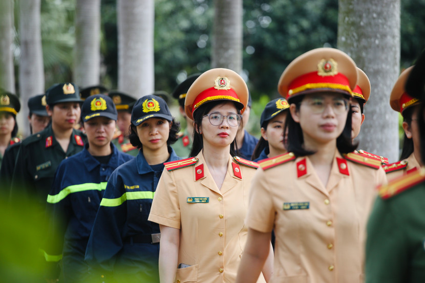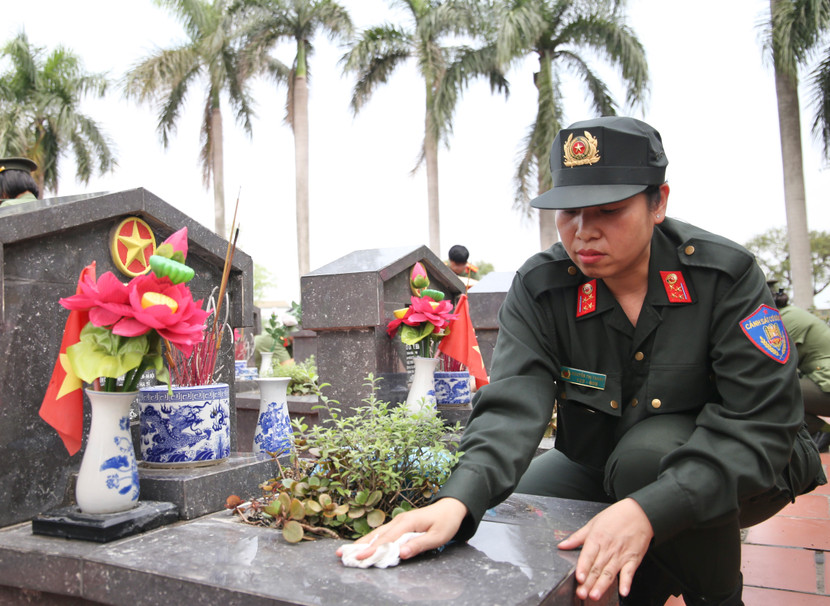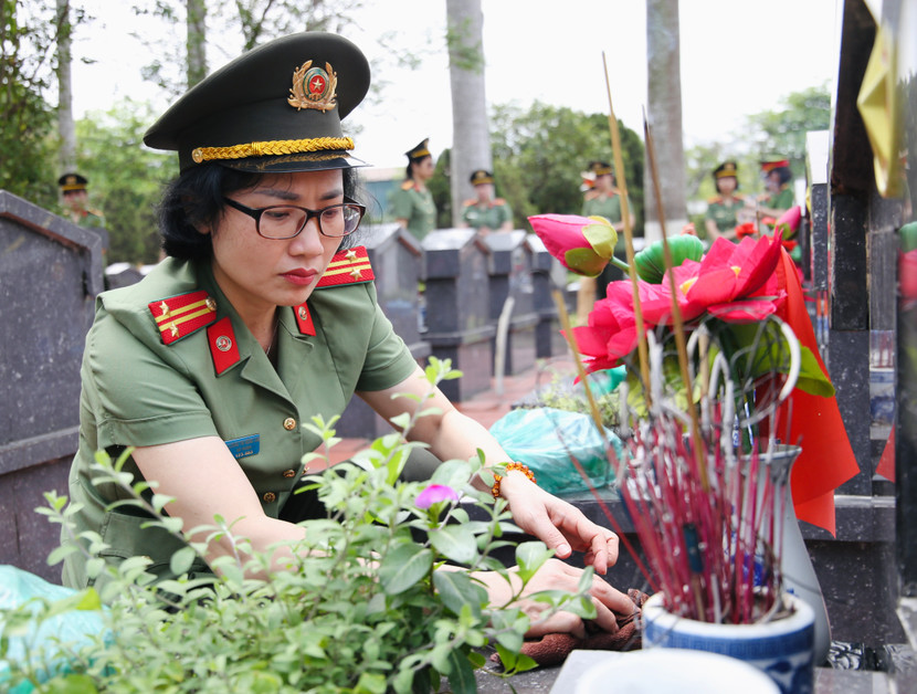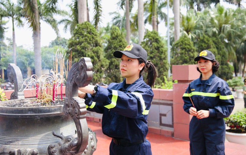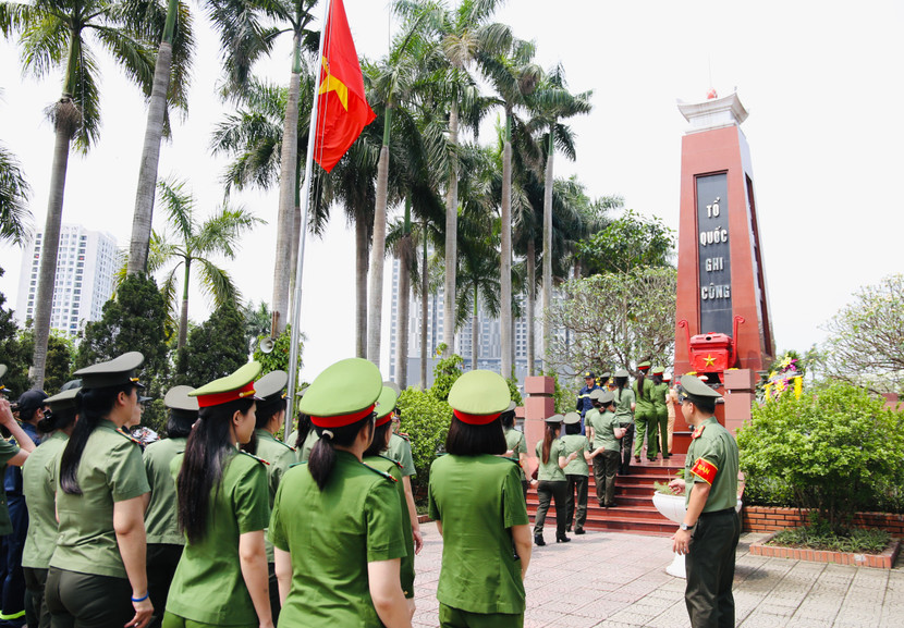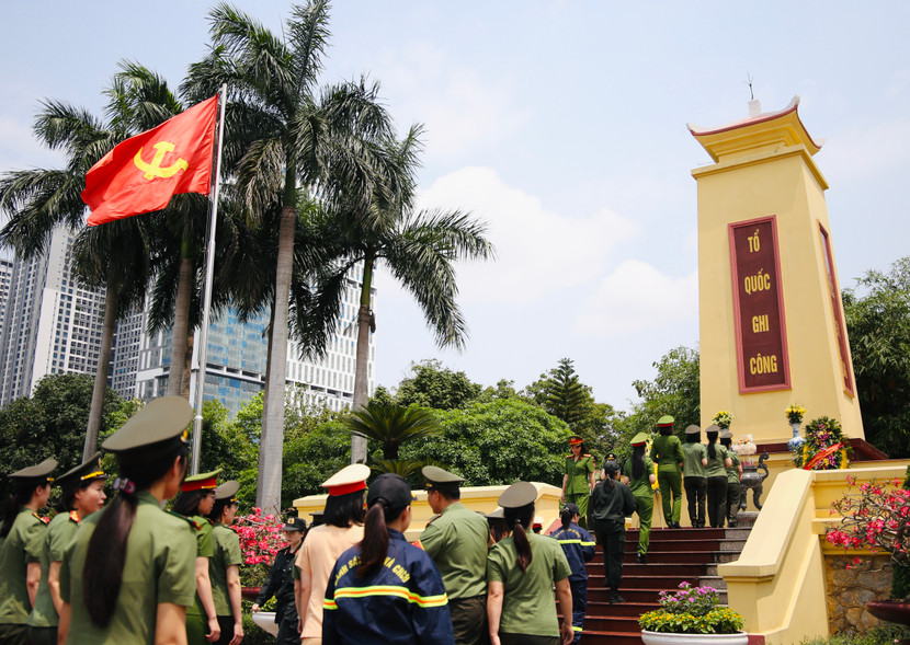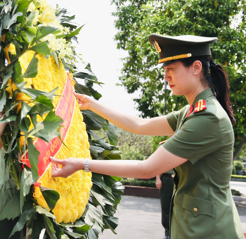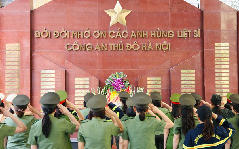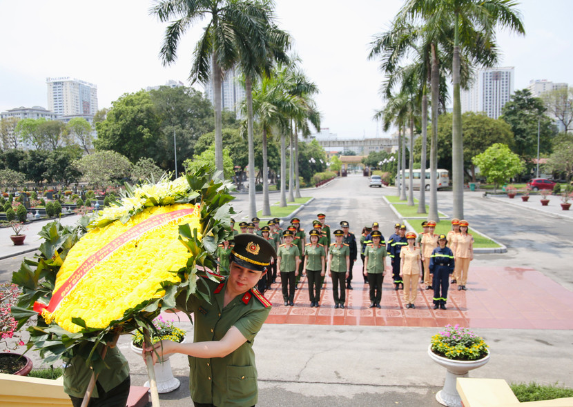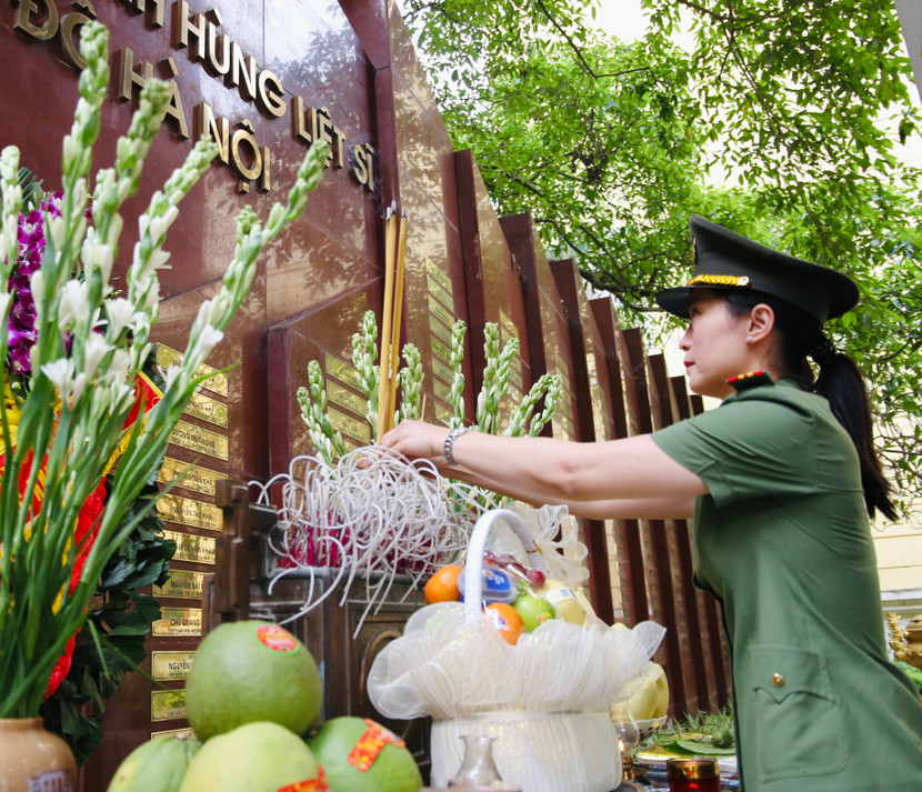 Đoàn công tác do Trung tá Vũ Thị Tứ - Trưởng ban Phụ nữ Công an thành phố Hà Nội - dẫn đầu đã tới đặt vòng hoa, dâng hương tại Đài tưởng niệm các Anh hùng liệt sỹ Công an thành phố (67 Lý Thường Kiệt, quận Hoàn Kiếm), Đài tưởng niệm các Anh hùng liệt sỹ Trường Sơn (phường Yên Nghĩa, quận Hà Đông), Nghĩa trang Liệt sỹ thành phố (phường Tây Tựu, quận Bắc Từ Liêm) và Nghĩa trang Mai Dịch (phường Mai Dịch, Cầu Giấy).