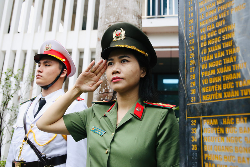 | Các nữ cán bộ chiến sỹ Công an Thủ đô thành kính dâng hương, tưởng niệm các Anh hùng liệt sỹ |