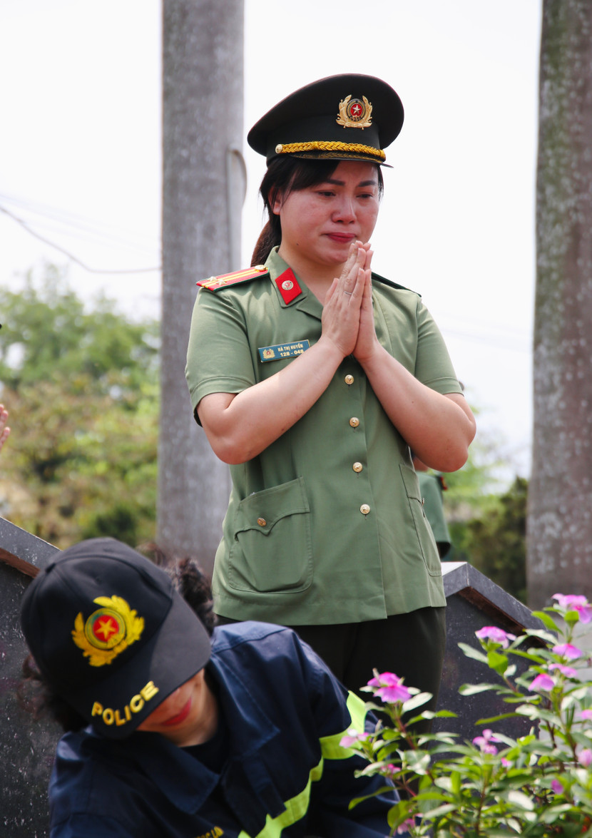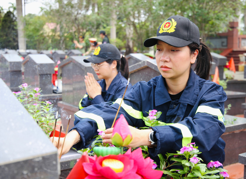 Dâng nén tâm hương, các thành viên đoàn nghiêng mình kính cẩn, tưởng nhớ và tri ân các Anh hùng liệt sỹ đã không tiếc máu xương, hy sinh thân mình để giành lại độc lập, tự do cho dân tộc, giữ gìn cuộc sống bình yên cho nhân dân, đồng thời hứa sẽ tiếp bước cha anh, đồng đội, nỗ lực hết mình thực hiện tốt nhiệm vụ, lập nhiều chiến công xuất sắc.