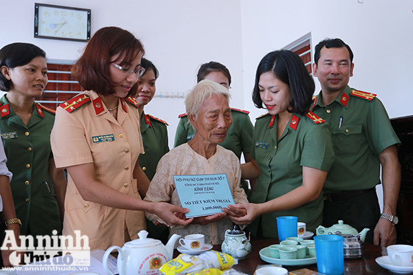 Đoàn công tác đã đến thăm hỏi và tặng quà cụ Khuất Thị Tư (sinh năm 1927) tại xã Xuân Phú, huyện Phúc Thọ. Cụ Tư là em gái liệt sỹ Công an nhân dân Khuất Văn Khoa, qua câu chuyện chúng tôi được biết cụ là em ruột và thân nhân duy nhất của liệt sỹ Khuất Văn Khoa (thuộc Ty Công an Sơn Tây, hy sinh vào thời kỳ chống Pháp). Sau khi em trai hy sinh, nỗi đau càng chồng thêm khi người con gái duy nhất của cụ cũng mất khiến khiến cụ suy sụp tinh thần cho tới tận bây giờ...