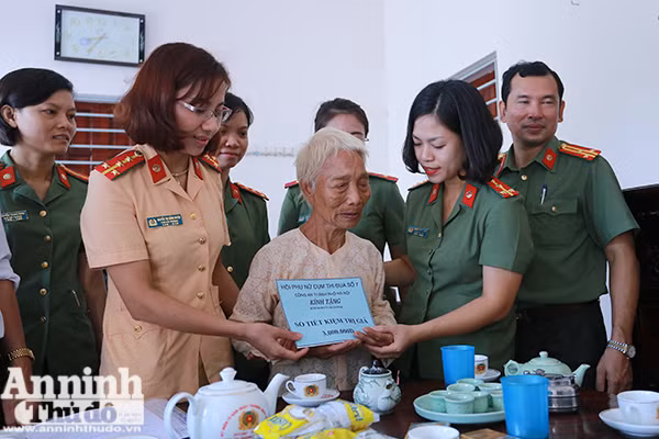 Đoàn công tác đã đến thăm hỏi và tặng quà cụ Khuất Thị Tư, tại đây đại diện Hội phụ nữ Cụm thi đua số 7 cũng trao tặng sổ tiết kiệm cho cụ.