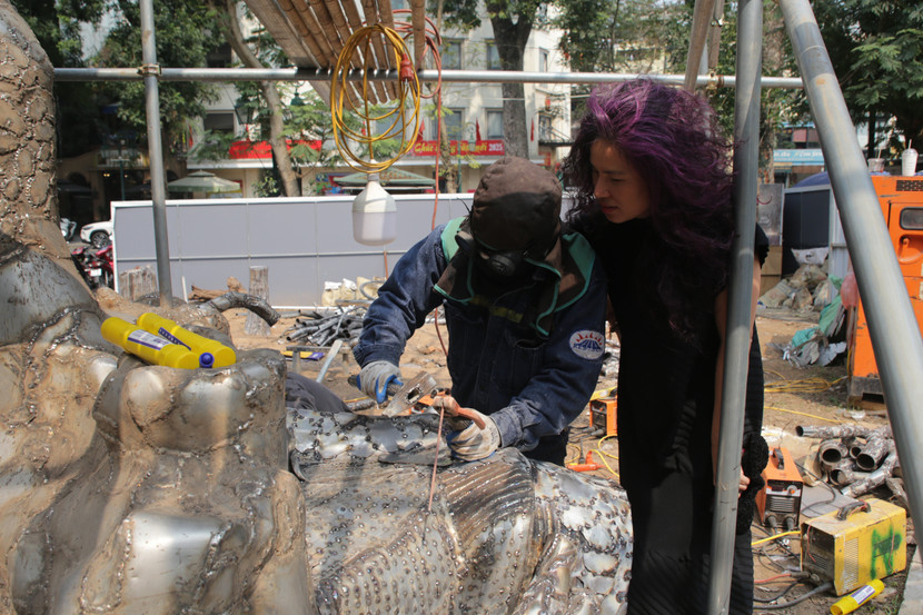 Nói thêm về tác phẩm đặc biệt này, Tia - Thủy Nguyên tiết lộ, ớp vỏ kim loại không chỉ là khung bảo vệ, mà còn là một bộ trang sức rực rỡ, vừa kiêu sa vừa gần gũi. Nó vừa là một công trình kỹ thuật kỳ công, vừa là lời nhắn gửi nghệ thuật về sự vươn mình và sức sống bền bỉ của vạn vật trong đời sống và thiên nhiên.