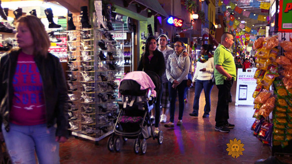 Plaza Fiesta hiện có 280 gian hàng, trong đó có cả phòng khám bệnh và nha sỹ. Trung tâm mua sắm này cũng có dịch vụ làm tóc, đổi tiền, đáp ứng mọi nhu cầu như trong một ngôi làng của người Mexico. Trước cửa trung tâm thương mại này có một trạm xe buýt để đón hơn 4 triệu lượt du khách trong năm 2013. Và để chiều khách, chủ trung tâm thương mại này tổ chức biểu diễn ca nhạc vào chủ nhật để mọi người đến đây thư giãn.