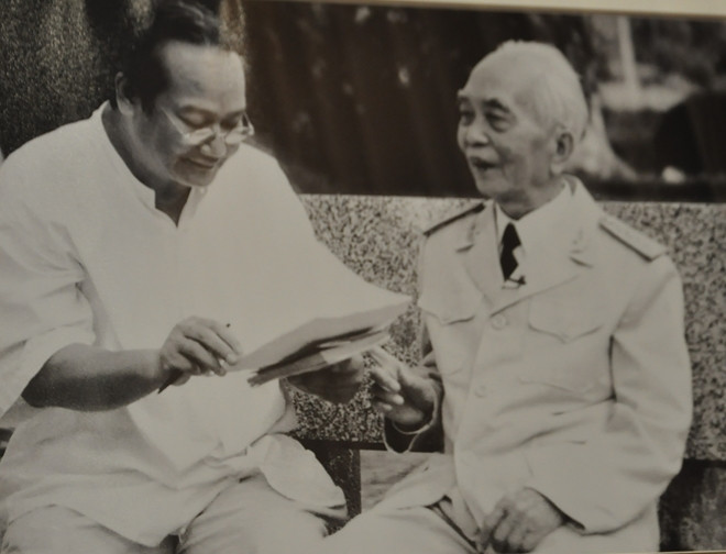 Phóng viên ảnh Nguyễn Đình Toán tặng bức ảnh ông chụp Đại tướng Võ Nguyên Giáp với nhạc sĩ Văn Cao Tết 1992 cho gia đình Đại tướng