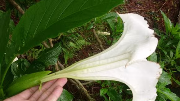 Gần đây, nhiều nhà vườn Đà Lạt bỗng bất ngờ khi các giống hoa loa kèn mà họ vẫn thường xuyên chăm trồng từ trước đến nay lại được mang danh là “Hơi thở của quỷ”; với tên khoa học là “Araceae” hay “cây Chân bê”, là cây ưa nắng, mọc thành bụi và có thể gây ngộ độc nếu ăn phải, hoặc gây hại nếu dính vào mắt... Trong các loại loa kèn hiện đang phổ biến ở Đà Lạt, trừ các giống loa kèn đang trồng kinh tế trong các nhà vườn, loại hoa được cho là giống với Borrachero của Colombia là hoa loa kèn hoang dại mọc ở Đà Lạt. Đây là loại cây thân mềm, chiều cao thân cây tối đa khoảng 5m, hoa có chiều dài trung bình 25cm, mùi thơm nhẹ, lá có vị đắng và lợ, hình thức giống lá thuốc lá. Điều đặc biệt, tất cả các bông hoa khi nở đều cắm đầu xuống đất, y hệt Borrachero.
