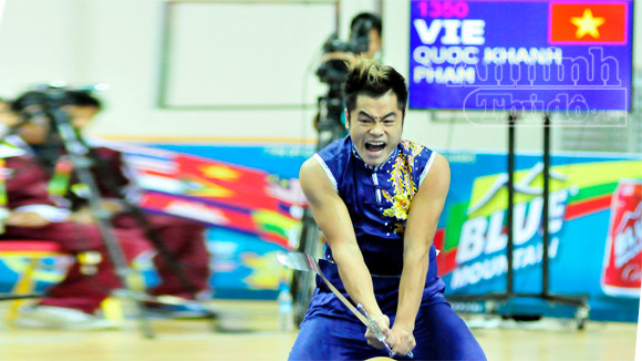 Tại thủ đô Nay Pyi Taw, sáng nay 10-12, wushu Việt Nam có ngày thi đấu cuối cùng. 4 VĐV tham dự gồm Quốc Khánh (nam côn nam), Thúy Vi, Phương Giang (đối luyện nữ) và Thanh Tùng (thái cực kiếm).