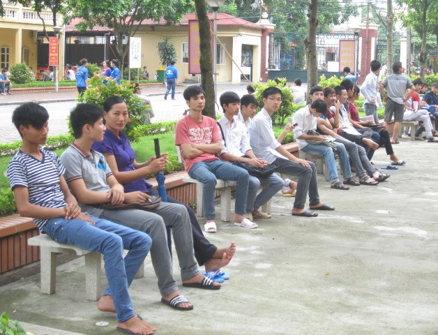 Các sĩ tử có mặt tại địa điểm thi từ rất sớm để làm thủ tục dự thi