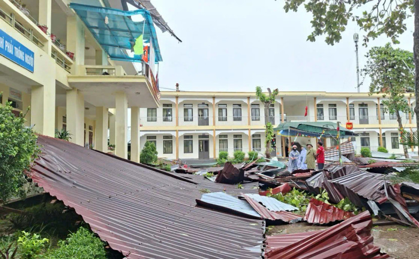 Tại Quảng Trị, nhiều trường bị tốc mái, sập tường rào, hư hỏng thiết bị; học sinh toàn tỉnh nghỉ học để bảo đảm an toàn.