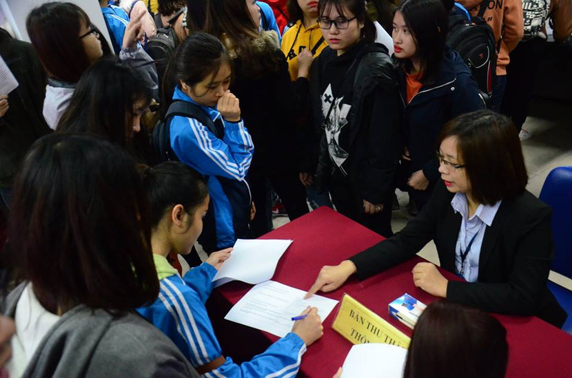 Phiên giao dịch thu hút rất đông sinh viên đến ứng tuyển