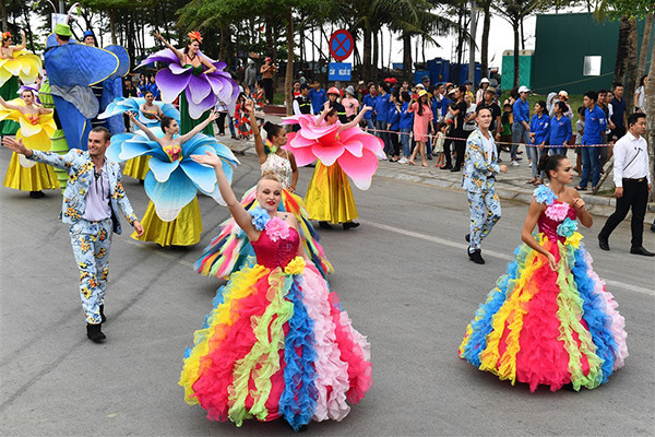 Chương trình diễu hành và trình diễn nghệ thuật sẽ diễn ra từ 17h00 đến 19h00 chiều 28/4 tại bờ biển Bãi Cháy, với sự tham gia của dàn vũ công châu Mỹ nóng bỏng đến từ Brazil, Colombia… trong trang phục sặc sỡ, bốc lửa cùng hơn 100 nghệ sỹ Việt Nam.