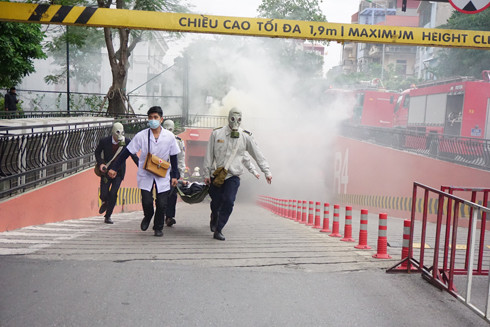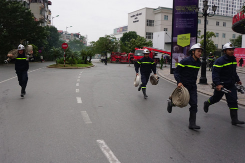 Đại tá Trần Văn Vụ, Trưởng Phòng Cảnh sát hướng dẫn, chỉ đạo về phòng cháy - Cảnh sát PCCC thành phố Hà Nội cho biết: “Công tác đảm bảo an toàn PCCC cho người dân sinh hoạt tại tòa nhà đã được tổ chức thường niên. Tại buổi diễn tập sáng nay, đã có 70 CBCS của các Phòng hướng dẫn chỉ đạo về phòng cháy, chữa cháy; Phòng cứu nạn cứu hộ, Phòng Cảnh sát PCCC số 2, số 3 và số 8 tham gia. Ngoài ra còn có các đơn vị phối hợp: Lực lượng y tế thành phố, Công an phường Thượng Đình, quận Thanh Xuân; Công ty kinh doanh nước sạch Thanh Xuân, Công ty Môi trường đô thị - Chi nhánh Thanh Xuân, Công ty điện lực Thanh Xuân cùng lực lượng PCCC cơ sở của Khu đô thị Royal City. Buổi diễn tập cũng là dịp để đánh giá sự phối hợp, kiểm tra trang thiết bị hoạt động PCCC tốt hay không, nhằm kịp thời khắc phục thay thế cũng như rèn rũa độ phản ứng kịp thời của lực lượng chữa cháy tại chỗ”.