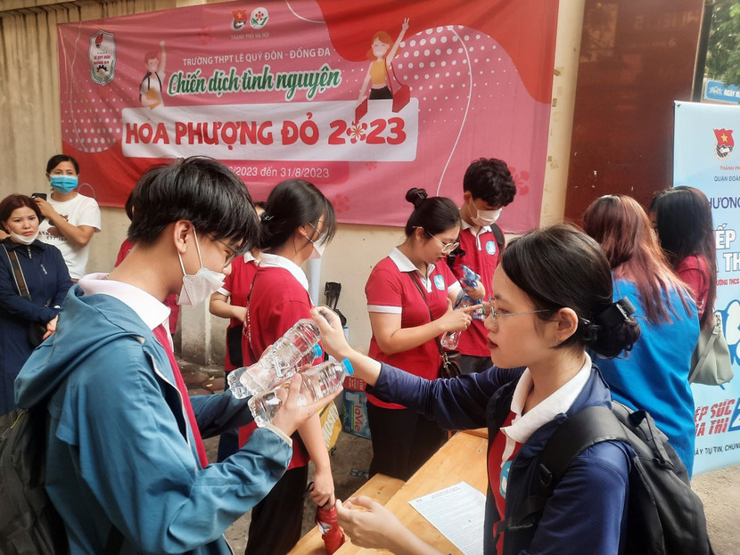Thành đoàn Hà Nội cho biết, tại tất cả điểm thi trên địa bàn thành phố, các đội hình tiếp sức mùa thi bố trí 15-20 tình nguyện viên ngoài cổng trường. Tình nguyện viên hoạt động với đội hình nòng cốt, bao gồm “Tiếp sức mùa thi”, “Hoa phượng đỏ”, “Giao thông xanh”, tập trung tại điểm thi để thực hiện các nhiệm vụ như: Phân luồng giao thông, hướng dẫn các thí sinh tìm vị trí phòng thi; hỗ trợ nước uống…