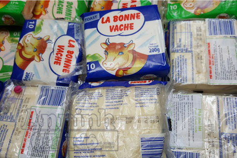 Đáng chú ý, trong kho lạnh của công ty có một số sản phẩm bơ, phomai Pháp đã quá hạn sử dụng 1, 2 tháng để cùng các sản phẩm đang được kinh doanh. Ngoài ra, tổ công tác còn phát hiện nhiều thùng xốp chứa các sản phẩm bơ Pháp đã hết hạn sử dụng từ năm 2014, 2015 như phomai lát La Bonne Vache và bơ President có tổng trọng lượng khoảng 300 kg.
