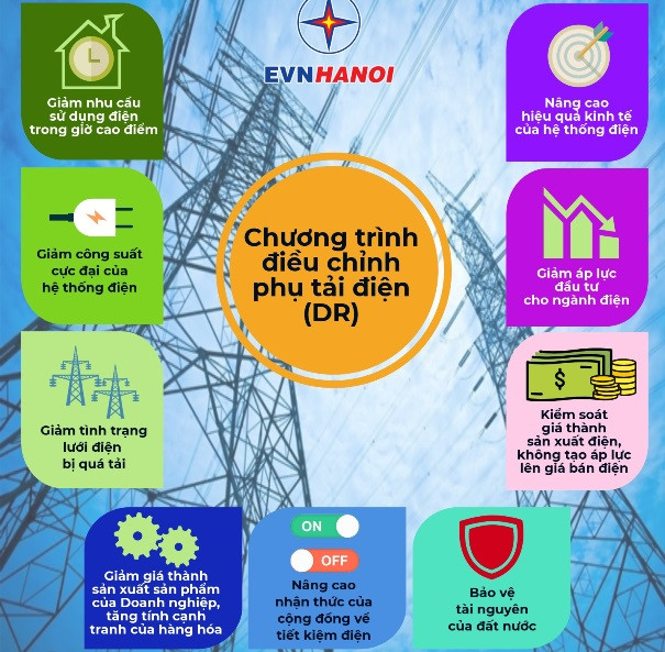 Chương trình DR được triển khai nhằm khuyến khích khách hàng chủ động giảm nhu cầu sử dụng điện được cung cấp từ hệ thống điện quốc gia khi có yêu cầu. Khách hàng sẽ chủ động điều chỉnh nhu cầu sử dụng điện như: tiết giảm các phụ tải không cần thiết, không ảnh hưởng đến dây chuyền sản xuất trong khoảng thời gian cụ thể theo đề nghị của đơn vị thực hiện chương trình điều chỉnh phụ tải điện căn cứ trên các hợp đồng đã thỏa thuận giữa hai bên.