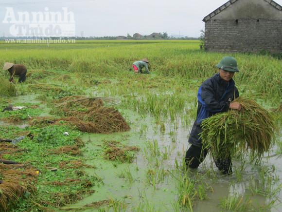 Chị Phạm Thị Lan, xã Nhân Sơn, huyện Đô Lương, Nghệ An người ướt đẫm sau mấy giờ đồng hồ ngâm mình dưới nước lụt để gặt vớt ruộng lúa đang bị ngập úng buồn bã: "Nhà tui nóng ruột thấy mọi người đều chạy lụt đi gặt lúa thì cũng đi gặt theo rứa thôi, chứ lúa còn xanh lắm mà nước lên quá nhanh. Mò mẫm dưới nước gần buổi trời mà vớt được có mấy ôm lúa, lúa này về rồi cũng hỏng hết thôi. Năm nay mất mùa trắng tay thật rồi...".
