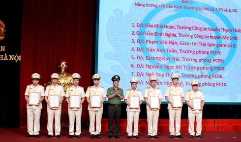 Qua rà soát, CATP có trên 6.500 đồng chí đủ điều kiện thăng cấp bậc hàm, nâng bậc lương, trong đó, có 80 đồng chí là lãnh đạo chỉ huy các phòng nghiệp vụ, Công an các quận, huyện, thị xã thuộc CATP.