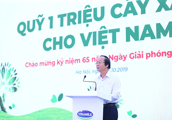 Ông Võ Tuấn Nhân – Thứ trưởng Bộ Tài nguyên và môi trường chia sẻ hành trình 8 năm đồng hành cùng Vinamilk thực hiện chương trình Quỹ 1 triệu cây xanh cho Việt Nam.
