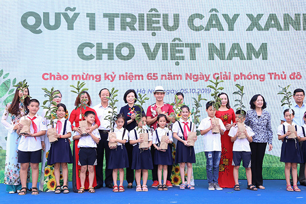 Bà Trương Thị Mai - Ủy viên Bộ Chính trị, Bí thư Trung ương Đảng, Trưởng ban Dân vận Trung ương cùng các đại biểu thực hiện nghi thức trồng cây, với mong muốn chương trình Quỹ 1 triệu cây xanh cho Việt Nam chung tay góp sức nâng cao và cải thiện môi trường sống cho TP. Hà Nội nói riêng, Việt Nam nói chung.