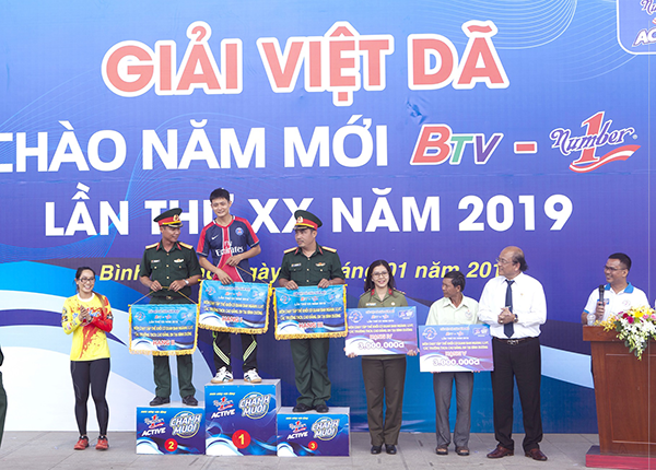 Đại diện Tập đoàn Tân Hiệp Phát cùng BTC trao giải cho các vận động viên