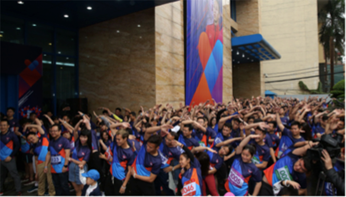 Tham gia giải chạy này, ông Lê Xuân Vũ và bà Trần Thị Bảo Quế - hai thành viên Ban điều hành của MB cùng các vận động viên đã rất hào hứng hoàn thành thử thách chạy bộ 18 tầng cầu thang của tòa nhà Trụ sở MB tại Hà Nội. Cuộc đua trở nên sôi động hơn với sự mở màn của 2 cầu thủ Quế Ngọc Hải - đội trưởng đội tuyển quốc gia Việt Nam và Nguyễn Văn Toàn - tiền đạo đội tuyển quốc gia Việt Nam.