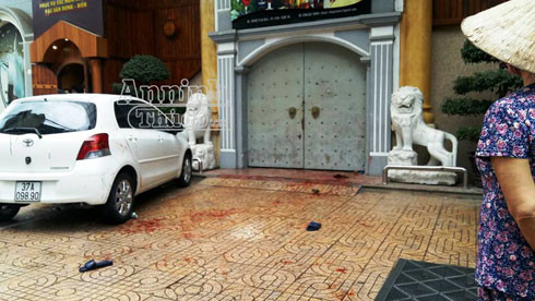 Tại hiện trường, sân phía trước cửa quán còn loang lổ vệt máu của nạn nhân. Một xe ô tô đỗ trước cổng cũng bị dính nhiều máu trên hông xe. Trong lúc hai nhóm ẩu đả thì một người nổ súng, nhưng rất may không trúng ai.