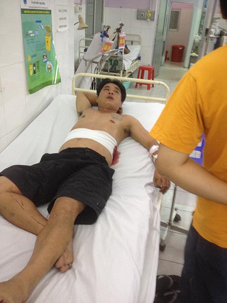 Nạn nhân Nguyễn Huy Hoàng cấp cứu tại bệnh viện, bị đứt gân tay
