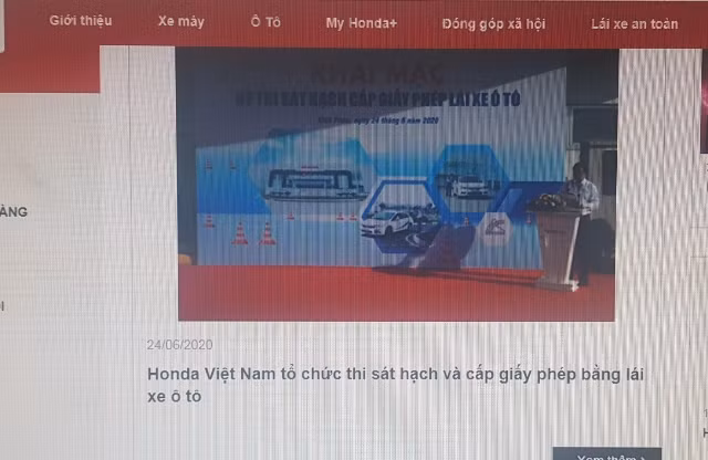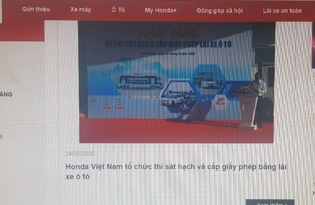 Thông điệp phía Honda Việt Nam tổ chức thi sát hạch và cấp Giấy phép lái xe trên website của hãng
