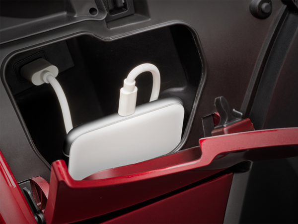 Về tiện ích: Sh Mode 2020 được trang bị hộc để đồ phía trước trước bên trái tích hợp cổng sạc USB giúp người sử dụng dễ dàng sạc các thiết bị di động. Cốp đựng đồ dưới yên được mở rộng 0,5 lít, tăng tổng thể tích lên 18,5 lít.