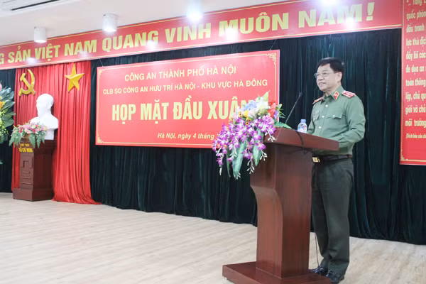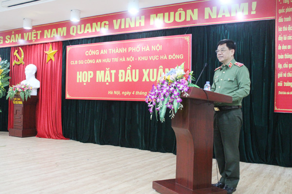 Thiếu tướng Đoàn Duy Khương thông tin vắn tắt các kết quả công tác của CATP Hà Nội đến đông đảo hội viên CLB Sỹ quan Công an hưu trí CATP Hà Nội khu vực Hà Đông