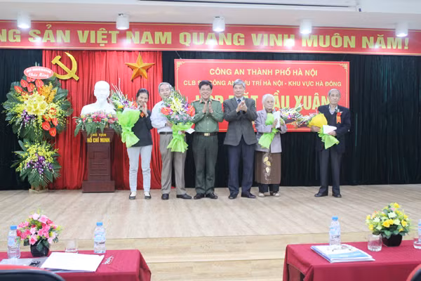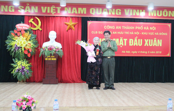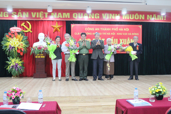 Thiếu tướng Đoàn Duy Khương, Giám đốc CATP Hà Nội tặng hoa và quà chúc mừng đầu năm mới đến CLB Sỹ quan Công an hưu trí CATP Hà Nội khu vực Hà Đông