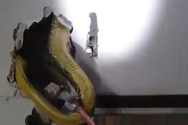 Sau đó, ông gọi đội cứu hộ động vật đến nhà. Họ dùng búa đập tường và phát hiện một con trăn khổng lồ đang nằm cuộn bên trong.
