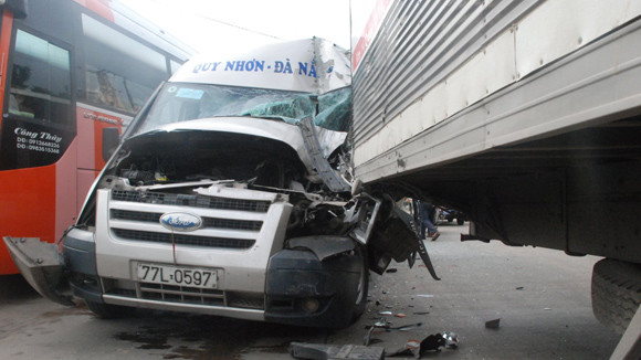 Và mới đây, 20 thí sinh đi thi đại học may mắn thoát tai nạn xảy ra vào lúc 7h sáng 1-7, trên đường Đinh Tiên Hoàng, đoạn đi qua phường Nghĩa Chánh (TP Quảng Ngãi). Nguyên nhân là do xe khách chạy quá tốc độ, vượt ẩu, đâm vào đuôi xe tải. Xe khách mang BKS: 77L - 0597 thuộc Công ty TNHH Vận tải ô tô tỉnh Bình Định, chạy tuyến Quy Nhơn - Đà Nẵng do lái xe Nguyễn Văn Tiến (SN 1968), trú tại phường Quang Trung (TP Quy Nhơn) điều khiển chạy hướng Bắc - Nam với tốc độ cao, vượt ẩu, không kiểm soát được tay lái đâm vào đuôi xe tải đông lạnh mang BKS: 30N - 3775. Tại hiện trường đầu xe khách bị nát bét, toàn bộ cabin xe bị vỡ hoàn toàn, lái xe Nguyễn Văn Tiến bị thương rất nặng đưa đi cấp cứu tại bệnh viện đa khoa Quảng Ngãi.