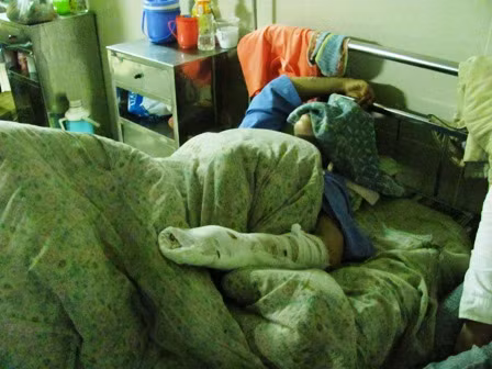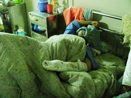 Chị Hoàng Thị Hoa đang nằm điều trị tại Bệnh viện đa khoa Ninh Bình.