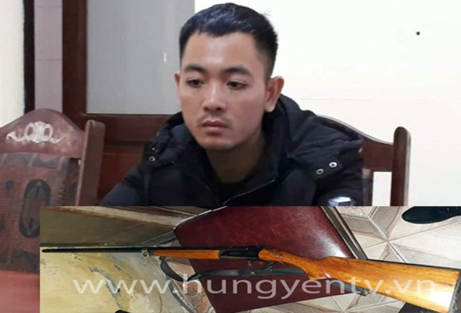 Nguyễn Văn Hưng và khẩu súng đối tượng sử dụng bắn anh L tử vong