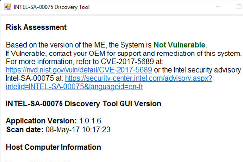 Nếu kết quả trả về “This system is not vulnerable; the ME SKU is not affected” thì máy tính không có lỗ hổng, kết thúc ở đây.