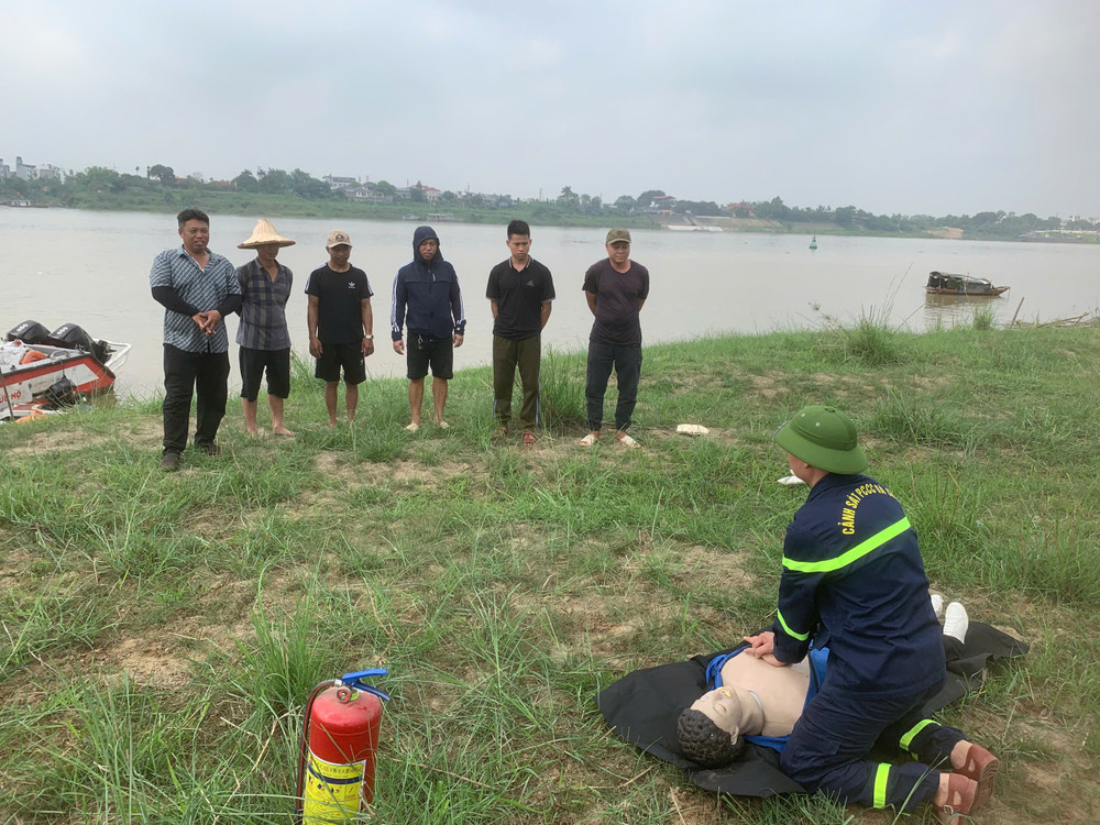 Hướng dẫn kỹ năng cứu nạn đuối nước cho người dân thuyền chài trên sông Hồng