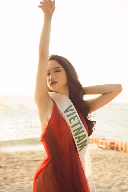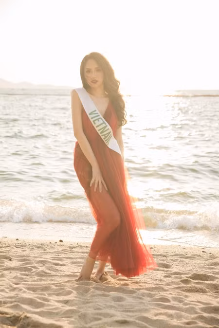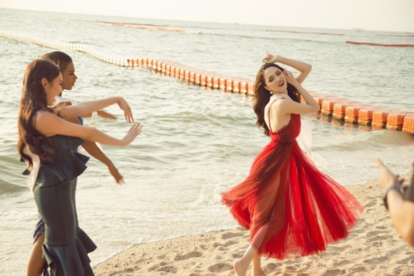 ANTD.VN -Tiếp nối các hoạt động của cuộc thi Hoa hậu Chuyển giới quốc tế 2018, nữ ca sĩ Hương Giang vừa có buổi ghi hình trên bãi biển Pattaya (Thái Lan) cùng các thí sinh. Diện bộ đầm đỏ của NTK Đỗ Mạnh Cường, Hương Giang nổi bật với vẻ ngoài vô cùng xinh đẹp.
