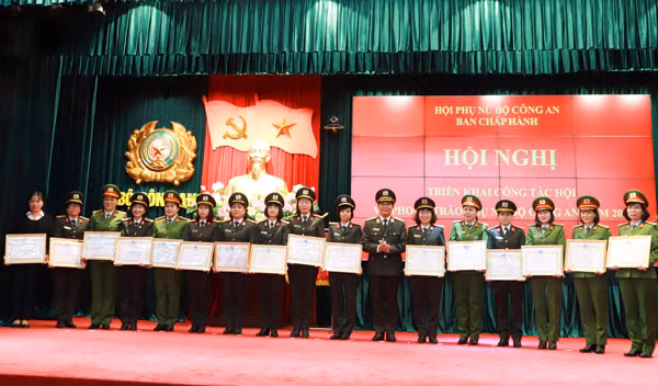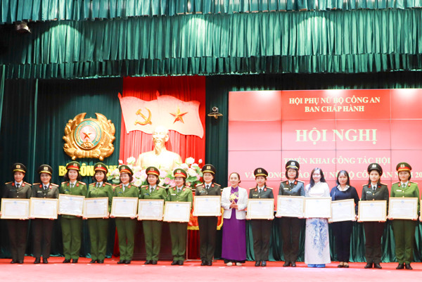 Đại tá Ngô Hoài Thu, Chủ tịch Hội phụ nữ Bộ Công an tặng Bằng khen của Hội phụ nữ Bộ Công an cho các tập thể và cá nhân