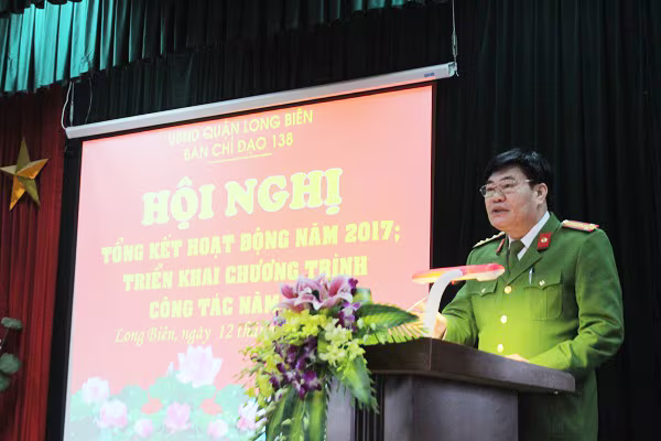 Đại tá Vũ Mạnh Hùng- Trưởng CAQ Long Biên phát biểu tại hội nghị