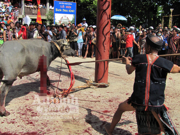 Một hôm, sau nhiều tháng liền mai phục đủ cách, hai anh em nhà kia dường như đã nản thì họ phát hiện nhiều loại thú nhỏ sau khi đến gần một loại cây đang chảy nhựa màu trắng đều lăn ra chết. Họ đoán đó là nhựa cây có chứa chất độc. Hai anh em liền mang cung tên, tẩm thuốc, lấy vật nuôi làm mồi nhử. Đến đêm, con thú xuất hiện liền bị hàng chục mũi tên bắn vào người, sau một hồi gầm rú rồi lăn ra chết. Từ đó, bản làng được bình yên, người Cơ Tu đặt tên cho loại chất độc bhilh là “thần hộ mệnh”.