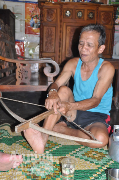 Ông dẫn chúng tôi đến gặp người cựu chiến binh già Lê Văn Trưa (74 tuổi, thôn Dong). Ông Trưa vốn là thợ săn “nức tiếng” một thời của vùng đất này. Ông kể: “Với thợ săn người Cơ Tu, họ rời bản làng từ lúc sáng sớm và trở về lúc chiều tối bởi trên cung tên, sau ống tre vác trên lưng chứa đầy các chất cực độc nên rất ít khi để người dân trong bản nhìn thấy. Để tinh chế được chất độc bhlih và melangy phải qua nhiều công đoạn, trong đó nhận dạng lá cây rừng thì chỉ có những người đàn ông có uy tính trong bản làng mới biết được”.