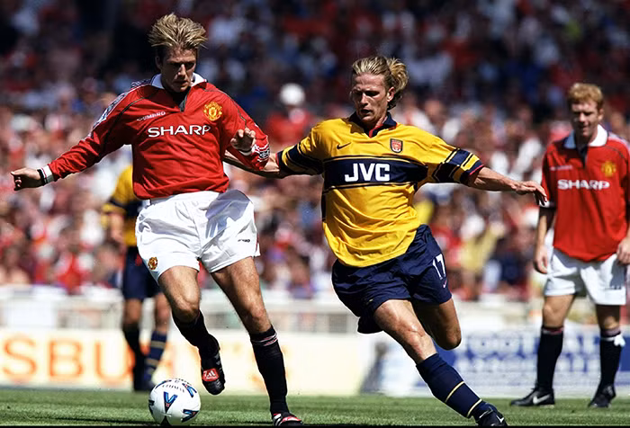 Petit (vàng) trong một trận đối đầu M.U năm 1998