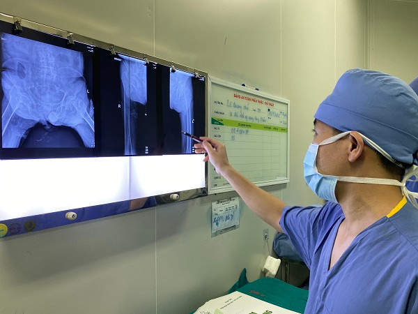 Vì thế, sau khi hội chẩn liên chuyên khoa, các bác sĩ đã quyết định thay cả 2 bên khớp háng cùng 1 lúc cho bệnh nhân, bởi nếu chỉ thay khớp háng bên trái (bị gãy do tai nạn trước rồi 1-2 tuần sau mới thay khớp háng bên còn lại sẽ khiến người bệnh đau đớn, nhiều biến chứng do nằm lâu.