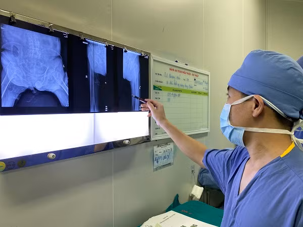 Ông K. đã được phẫu thuật bằng phương pháp thay khớp háng bán phần không xi măng với kỹ thuật đường mổ nhỏ, ít xâm lấn. Sau mổ, người bệnh tỉnh táo và đang theo dõi và điều trị.