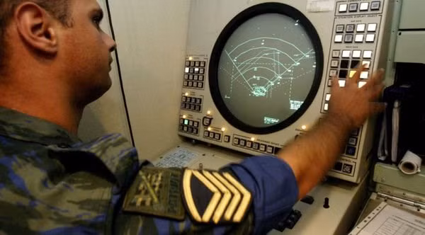 Một sỹ quan phòng không Hy Lạp điều khiển radar tên lửa phòng không Patriot tại căn cứ Tatoi, phía bắc Athens