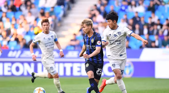 Công Phượng (giữa) đã có sự tiến bộ tại K-League và gần như chắc một suất ở đợt tập trung ĐTQG Việt Nam