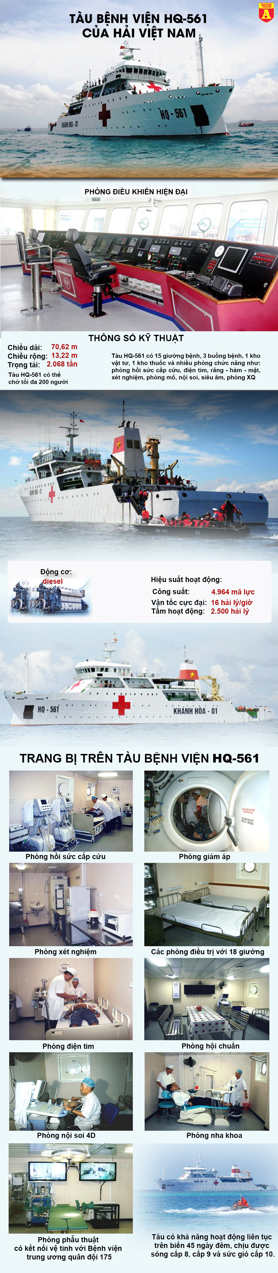 Với trang thiết bị hiện đại, kết nối trực tiếp với bệnh viện lớn trên đất liền khi thực hiện những ca mổ khó, HQ-561 được coi là tàu bệnh viện hiện đại hàng đầu khu vực Đông Nam Á.